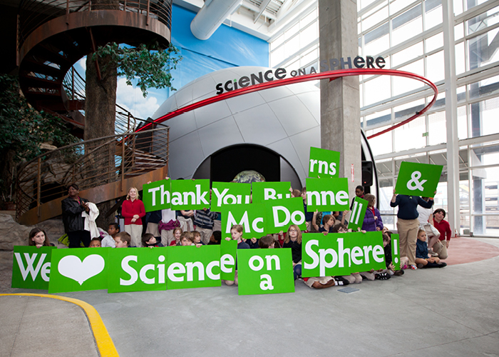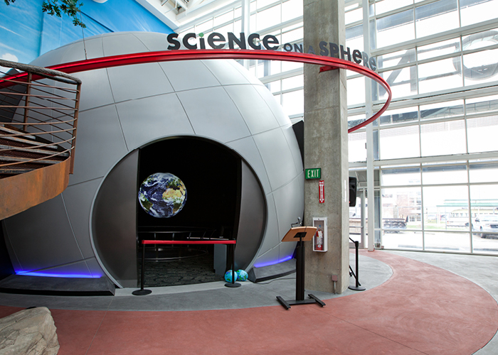 SCIENCE ON A SPHERE offers a world’s worth of information — literally! This room-sized, global display system displays planetary data on a 6-foot diameter sphere. Developed by researchers at NOAA, it helps you see earth system science in a whole new way. With 360-degree projections, the globe becomes the blue marble of Earth with more than 300 data sets that display weather patterns, tectonic shifts and other geophysical phenomena.