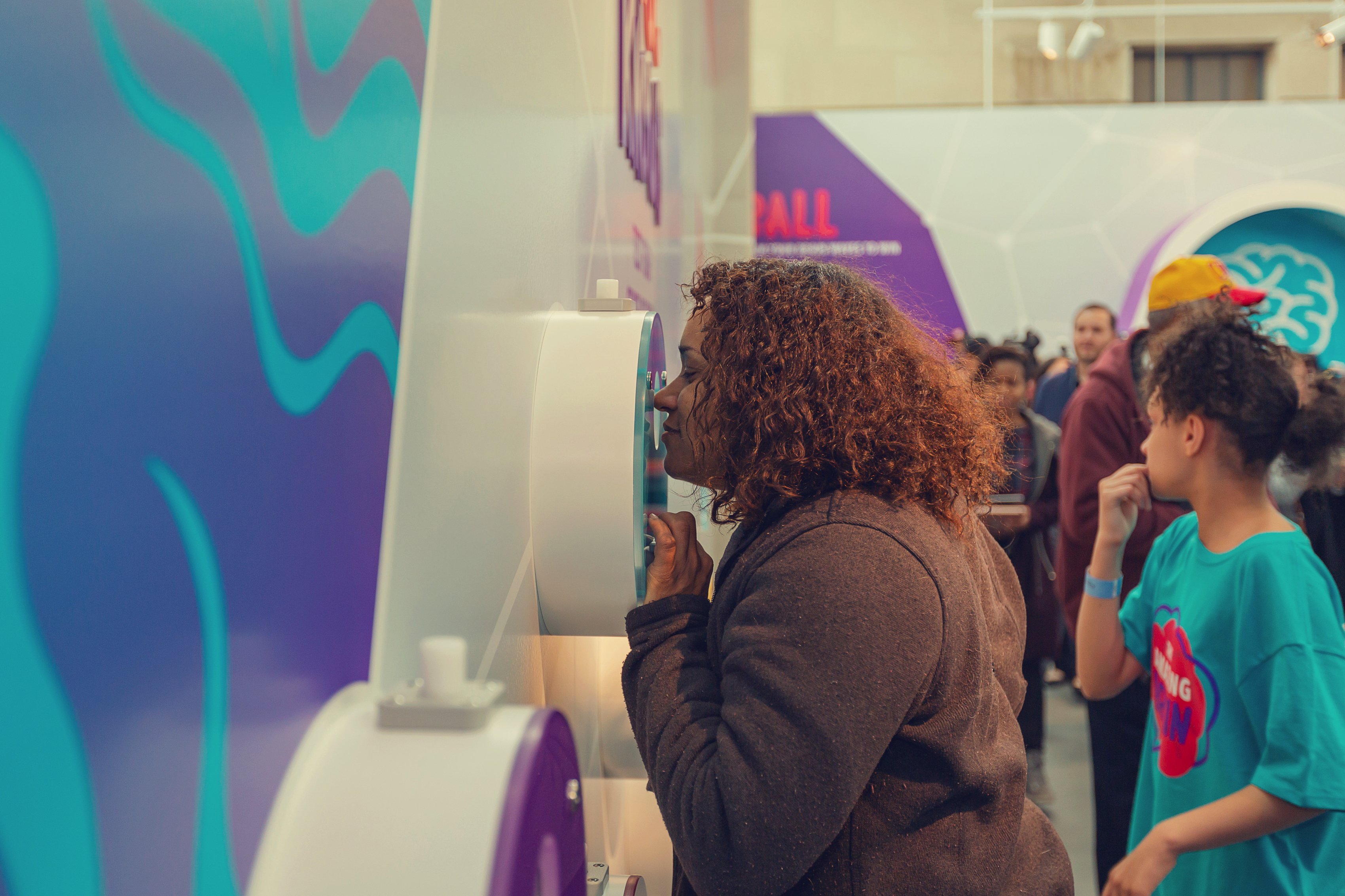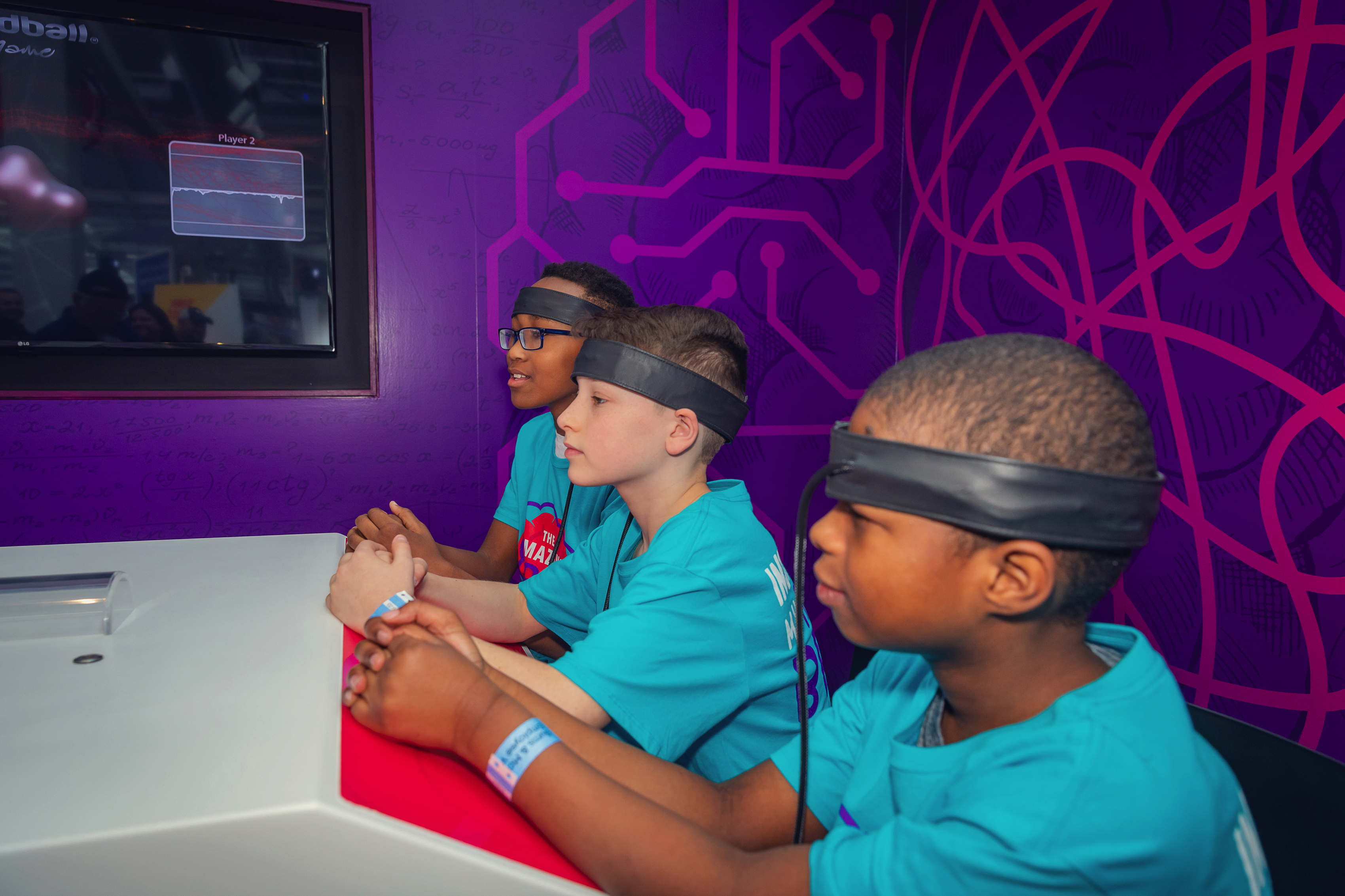 Ready, Set, Recall is a colorful, fast-paced demonstration of your memory network. Be the Brainstem and see how well you can keep up with the automatic functions your body performs to stay alive. Explore your brain’s sound system with audio illusions in Listen Up. Test the teamwork between your brain and body in Balance Me and measure your reaction time with Think Fast. In Upside Down and Backwards, flip your view and tie a shoe. Freeze Frame demonstrates how your brain can be tricked, while Name That Color shows how your brain reacts when it faces competing information. In The Nose Knows, sniff through a library of different scents and test how well your brain interprets the smells. Calm your brainwaves to win in Mindball, where your ability to relax is the key to victory. Hot or Cold shows how mixed signals can lead to some surprising sensations. In Shock or Not, some people will get a shock when they press a button and some won’t. Ever wondered how you would do when tested by a Lie Detector? Here’s your chance. With the Endurance Test, hang onto a bar as long as you can to see if physical stamina is all in your mind.