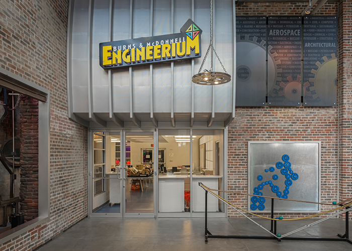 The BURNS & MCDONNELL ENGINEERIUM provides a deep dive into hands-on learning, encouraging thousands of kids to consider careers in technology and engineering. Interactive programming reaches out to a wide age range with topics such as Robotics 101, LEGO Robot Challenge, Smart Robots and Renewable Wind.